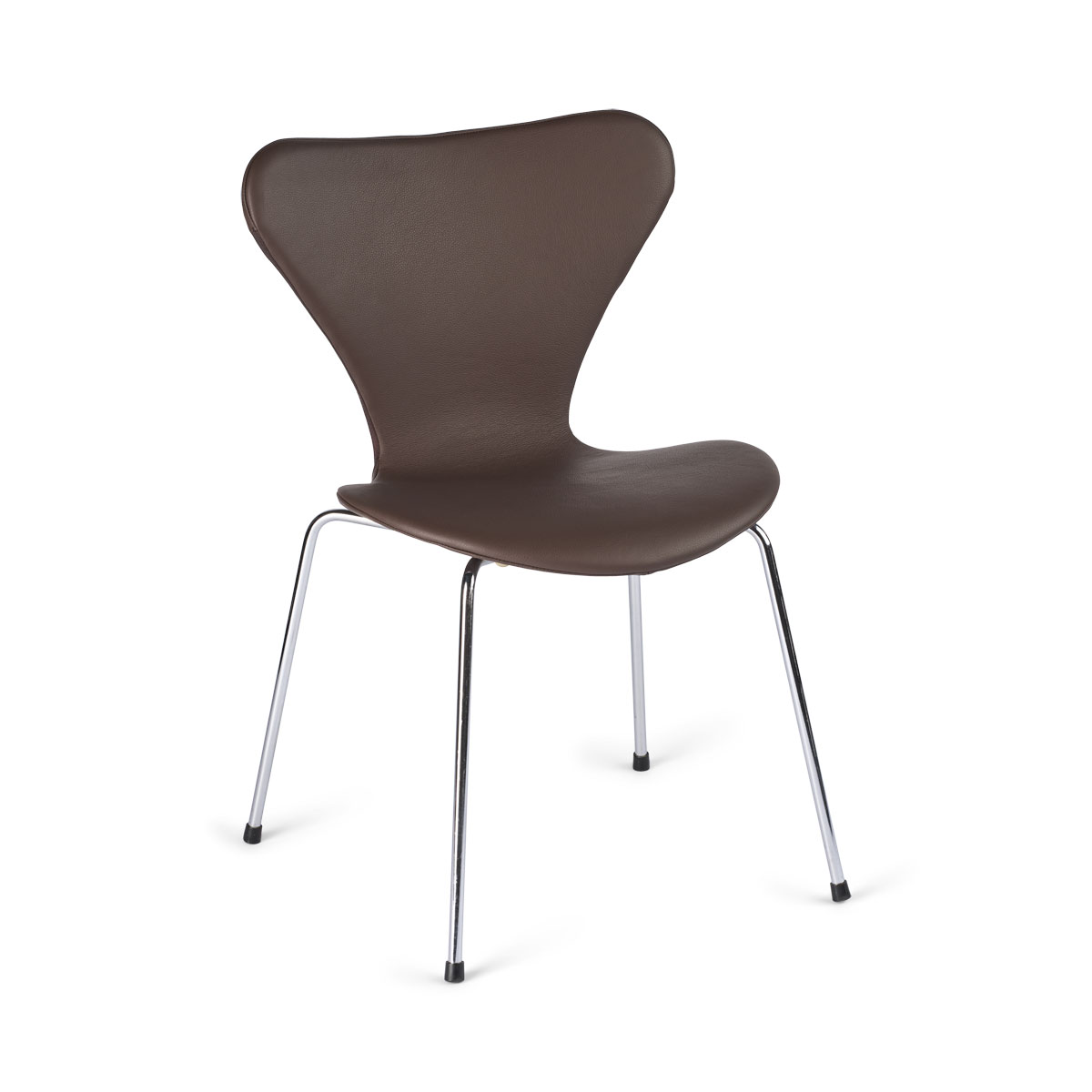 Upgrade your Series 7 chair (Model 3107) with the Premium Series 7 Cover 2.0 – Brown for an exclusive look. This handmade Premium leather cover is crafted to replicate the look of an original fully upholstered Arne Jacobsen Series 7 chair. The design features a seamless leather front and a zipper-free back, giving the chair an elegant, uniform, exclusive look.